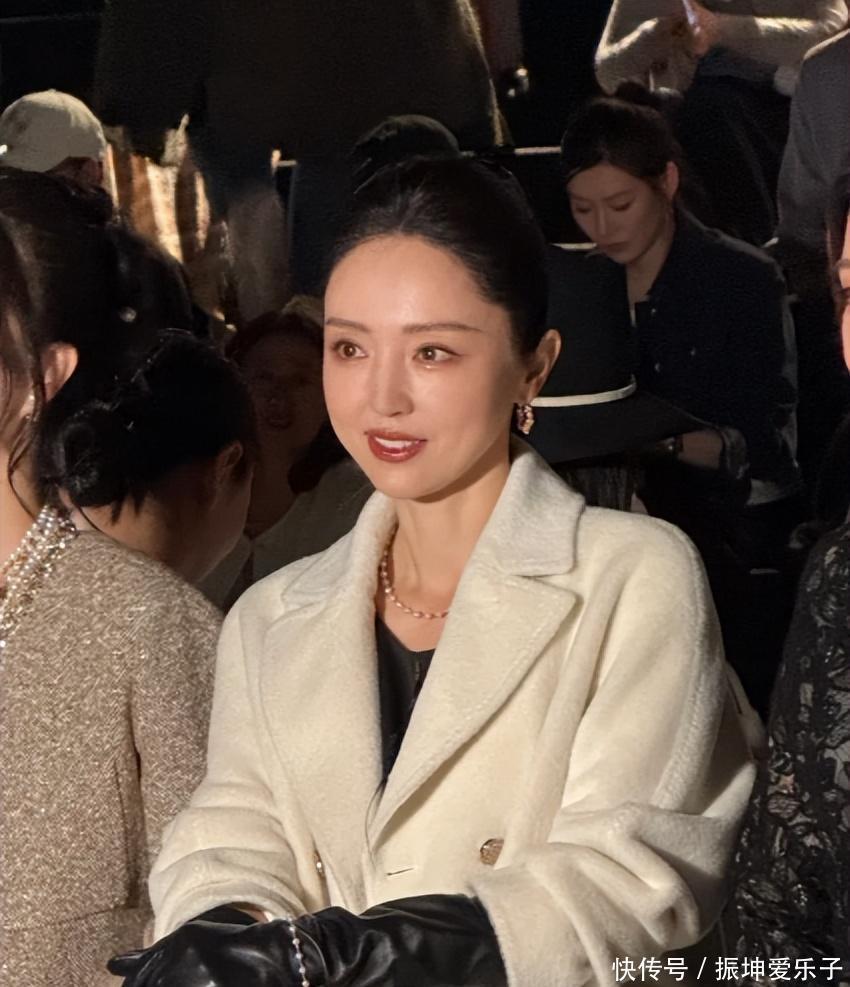 这场亮相很快就被全网讨论开了,评论区都吵翻了。有人说她 “肯定是医美做太多了”,也有人猜 “是不是再婚以后生活太累啊”。再看看高清生图,她脸颊比平时圆了不少,苹果肌像充了气似的鼓着,笑起来眼角没什么皱纹,可法令纹倒被 “挤” 得更明显了。尤其是低头跟品牌方打招呼的时候,下颌线模糊成一片,浅浅的双下巴根本藏不住。那条细链项链也被吐槽惨了,细细一根挂在脖子上,跟宽松的大衣一对比,网友都调侃 “这不像是偷戴了女儿的玩具链嘛”。